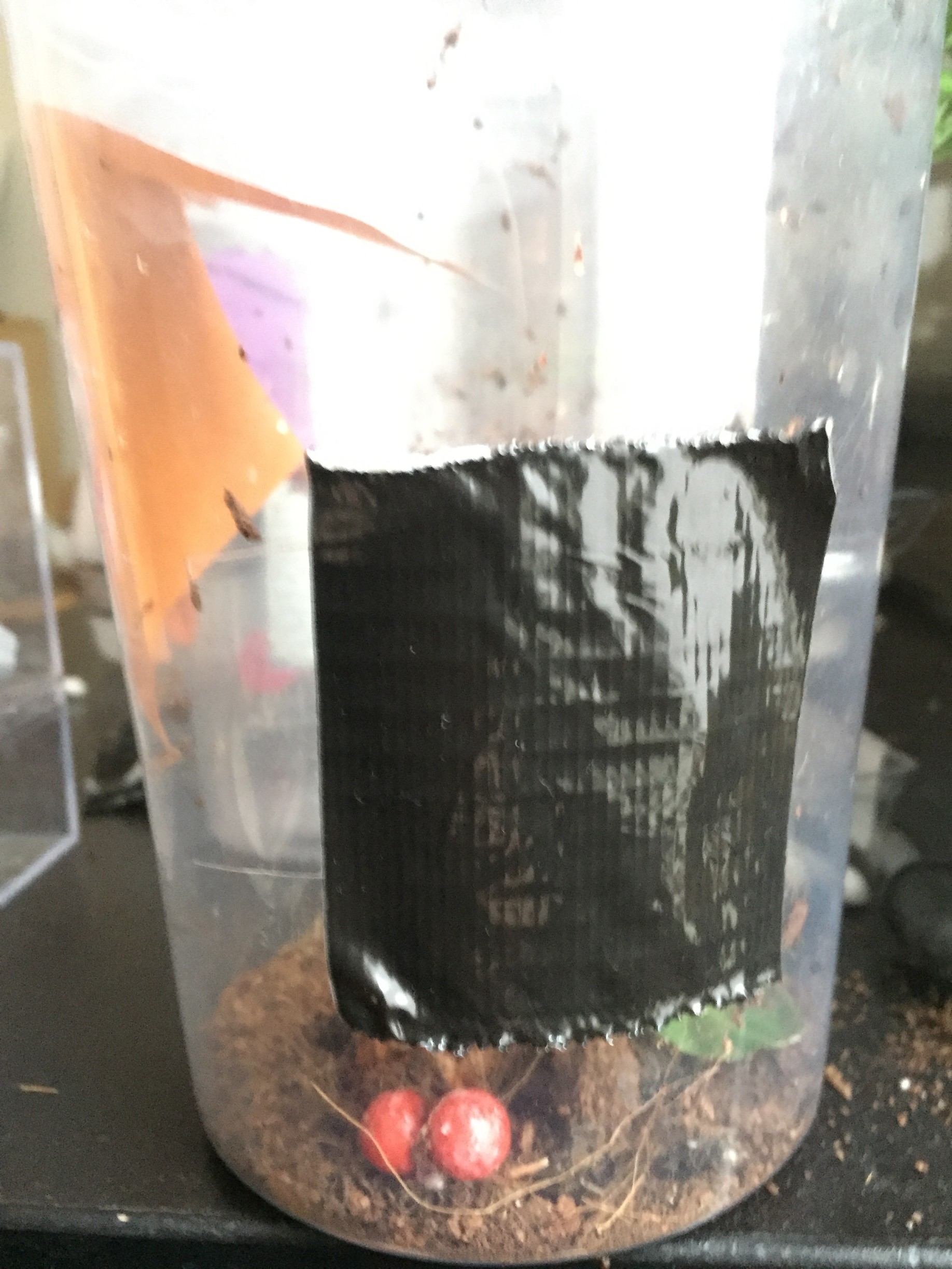 Eventually they are all separated. In the deli cups I provide fruit flies every other day via a funnel and water every three days.