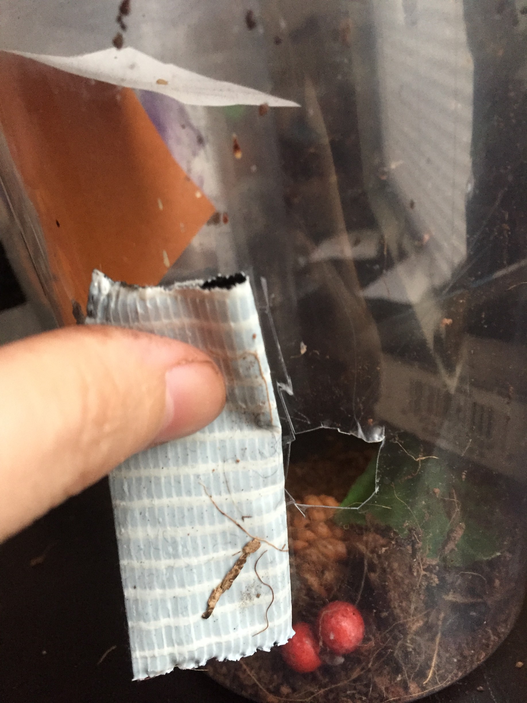 I typically separate once it looks like some spiderlings are much larger than their siblings, as this is usually when cannibalism becomes an issue. I take out the largest ones and house them in deli cups (see the section on simple deli cups under Spider Enclosures). A good way to separate them is to utilize a pop-up tent, opening the large communal deli cup inside the tent and then carefully moving them with a bit of paper.