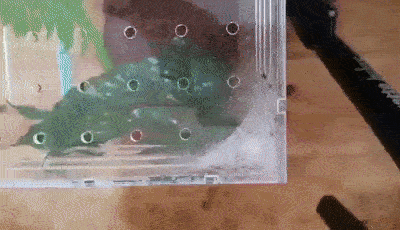 Separating them can be a challenge. It can be hard to decide when to do it, but you should wait as long as you can, as they are easier to feed and hydrate communally. Water should be provided as a fine mist once a day and they should be fed fruit flies every other day.
